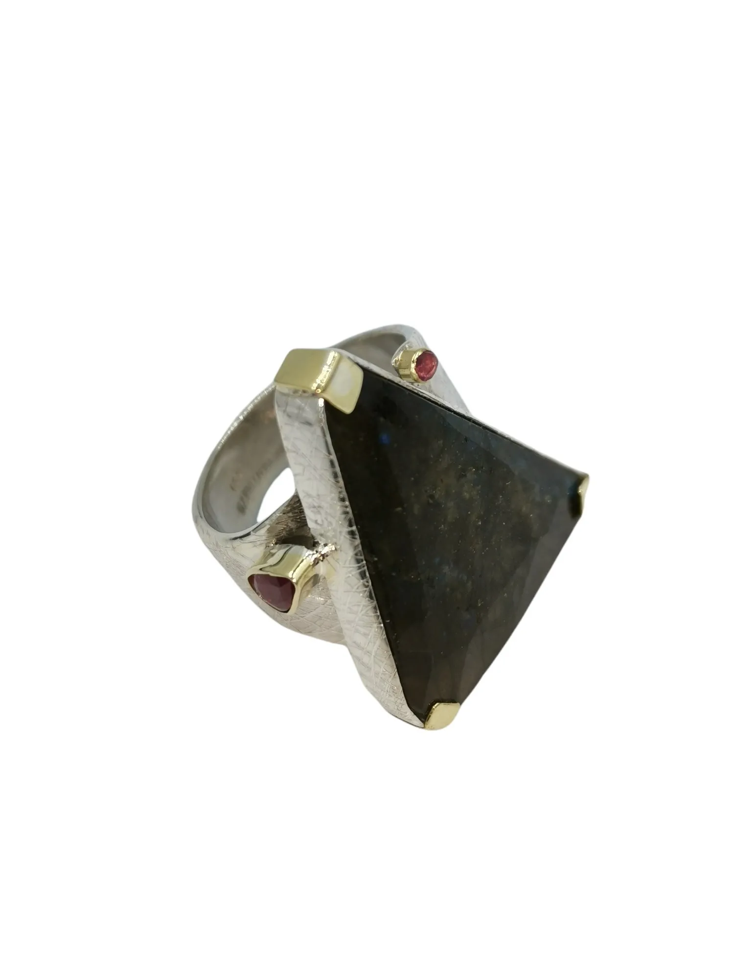 Labradorite rare quality , triangle faceted fancy cut , setted on a -one of a kind- ring.