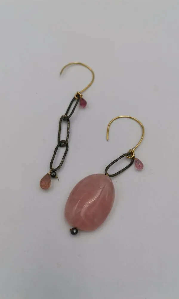 Handcrafted hammered silver 22k goldplated and black ruthenium earrings.